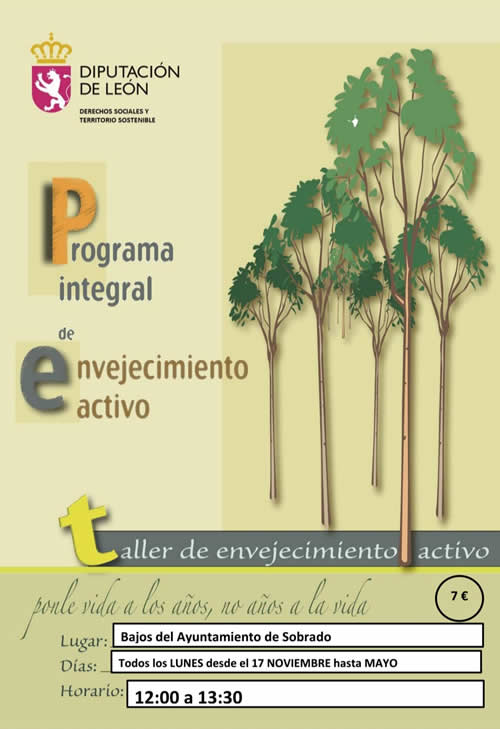 La Asociación de Jubilados del Municipio de Sobrado se acoge al “Programa Integral de Envejecimiento Activo” promovido por la Diputación de León y por la Consejería de Familia e Igualdad de Oportunidades de la Junta de Castilla y León.