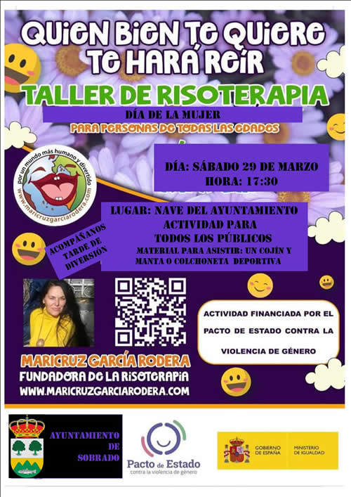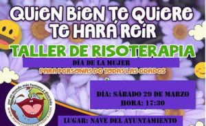 Como cada año nuestro Ayuntamiento lo celebra con diferentes actos ese día. Por problemas de agenda una de las actividades más divertidas y motivadoras  ha sido programada, un poco mas tarde de lo deseado, para el sábado 29 de marzo en la nave del Ayuntamiento. Se trata de un taller de risoterapia  llevada a cabo por Mari Cruz García Rodera.